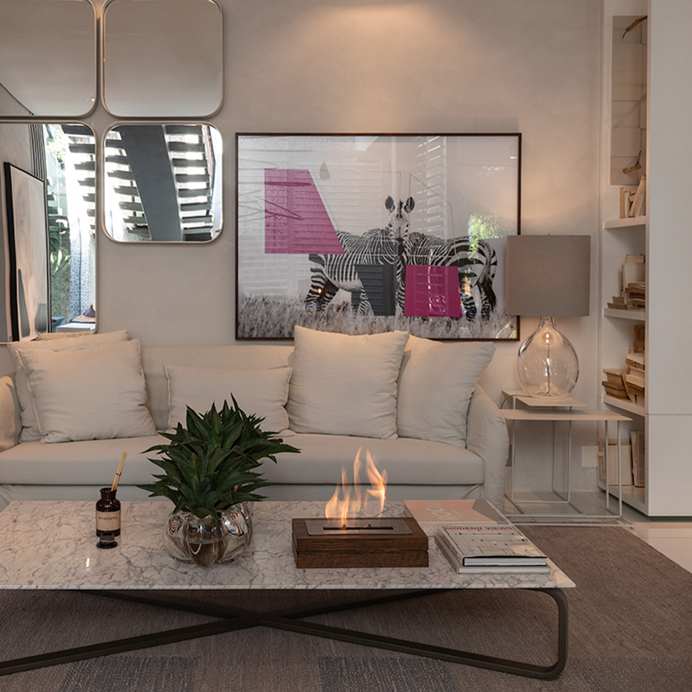 Lareira Portátil, com queimador ECO 01 e base de madeira MDF.