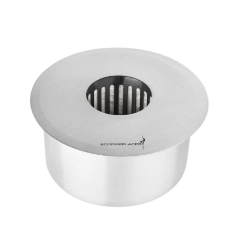 Lareira Ecológica Ecofireplaces de encaixe em aço inox escovado. Queimador com capacidade de 2,5 litros de Biofluido. Tempo de queima em média 1 hora por litro, aquece uma área aproximada de 30 m² e pesa 2 kg, com dimensões de Ø 22 x 10 cm. kit manuseio incluso. Manta para proteção térmica inclusa.